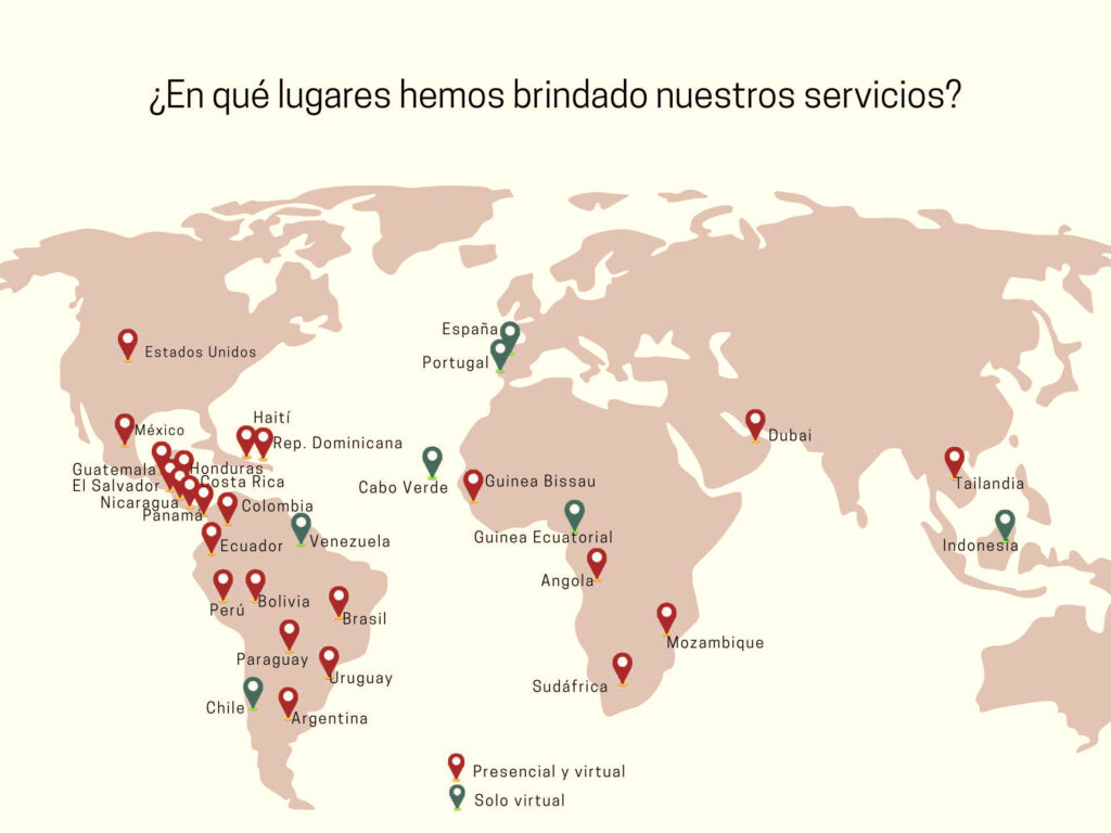 Desde el 2001, VRS Consult brinda servicios a organizaciones de diversos países, atendiendo actualmente a organizaciones de más de 30 países, tanto en consultoría, como en capacitación, en diversos temas.